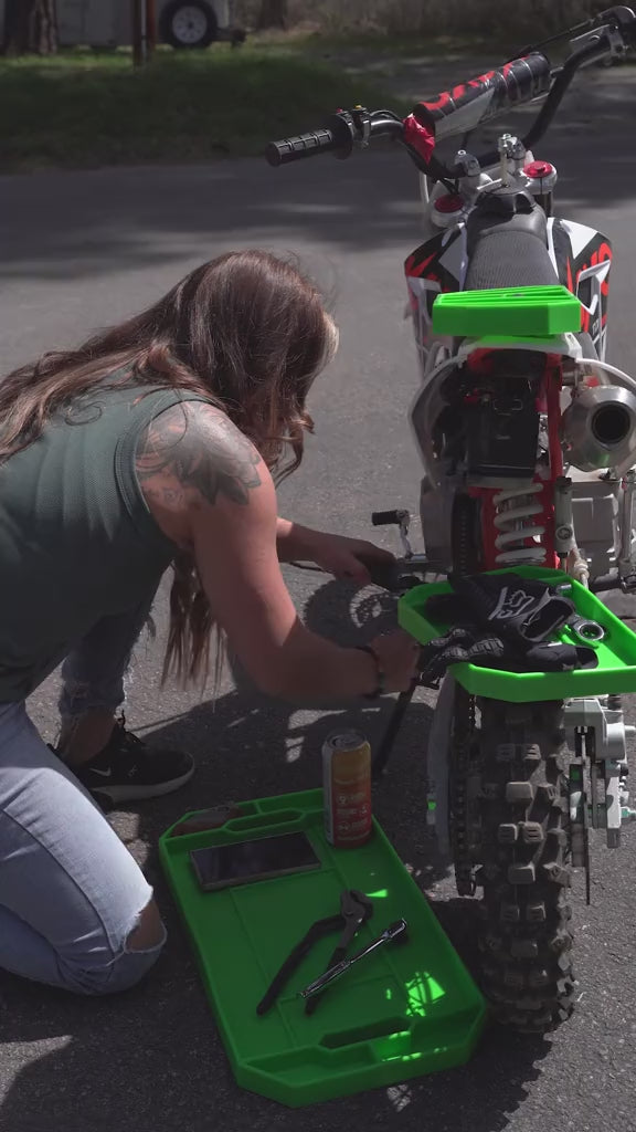 The high-friction silicone grips to fenders, wings, dashboards, carts, and benches—no magnets needed. Tools stay exactly where you put them, helping you work faster, cleaner, and more efficiently on every job.